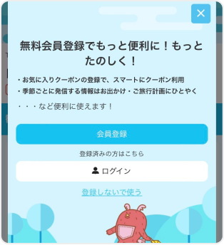 会員登録をしなくてもクーポンをご利用いただけます。その場合は、 【登録しないで使う】をタップしてください。